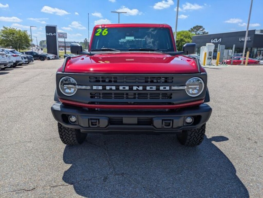 Black Diamond Package (Auxiliary Switches, LED Fog Lamps, Powder Coated Steel Front and Rear Bumpers, Rock Rails, Washout Capable Rubberized Flooring, and Wheels: 17" Black High Gloss-Painted Steel), Equipment Group 222A Mid Package (2-Door Intelligent Access with Lock/Unlock, AM/FM Stereo, Ambient Footwell Lighting, Cloth Bucket Seats, Connected Navigation, Driver and Front Passenger Illuminated Sliding Visor Vanity Mirrors, Dual Smart Charging USB Ports, Dual-Zone Electronic Automatic Temperature Control, Front Row Heated Seats, Pro Power Onboard - 400W, Rear Parking Sensors, SiriusXM with 360L, SYNC 4, and Wheels: 17" Carbonized Gray-Painted Aluminum), Ford Connectivity Package (1-Year Included), 4-Wheel Disc Brakes, 7 Speakers, ABS brakes, Air Conditioning, Alloy wheels, AM/FM radio: SiriusXM with 360L, Auto High-Beam Headlamps, Auto High-beam Headlights, BLIS Blind Spot Information System, Brake assist, Carbonized Gray Molded-in-Color Hard Top, Compass, Delay-off headlights, Driver door bin, Driver vanity mirror, Dual front impact airbags, Dual front side impact airbags, Electronic Stability Control, Emergency communication system: 911 Assist, Engine Block Heater, Exterior Parking Camera Rear, Front and Rear Floor Liners Without Carpet Floor Mats, Front anti-roll bar, Front Bucket Seats, Front Center Armrest, Front License Plate Bracket, Front reading lights, Front Row Top Panels and Door Storage Bags, Front wheel independent suspension, Fully automatic headlights, Hard Top Sound Deadening Headliner, Heated door mirrors, Illuminated entry, Integrated roll-over protection, Lane-Keeping System, Low tire pressure warning, Occupant sensing airbag, Outside temperature display, Overhead airbag, Overhead console, Panic alarm, Passenger door bin, Passenger vanity mirror, Power door mirrors, Power steering, Power windows, Pre-Collision Assist with Automatic Emergency Braking, Radio data system, Raptor-Style Running Board, Rear-View Camera, Rear-Window Defroster and Washer, Remote keyless entry, Security system, Speed control, Split folding rear seat, Steering wheel mounted audio controls, Tachometer, Telescoping steering wheel, Tilt steering wheel, Traction control, Trip computer, and Variably intermittent wipers.