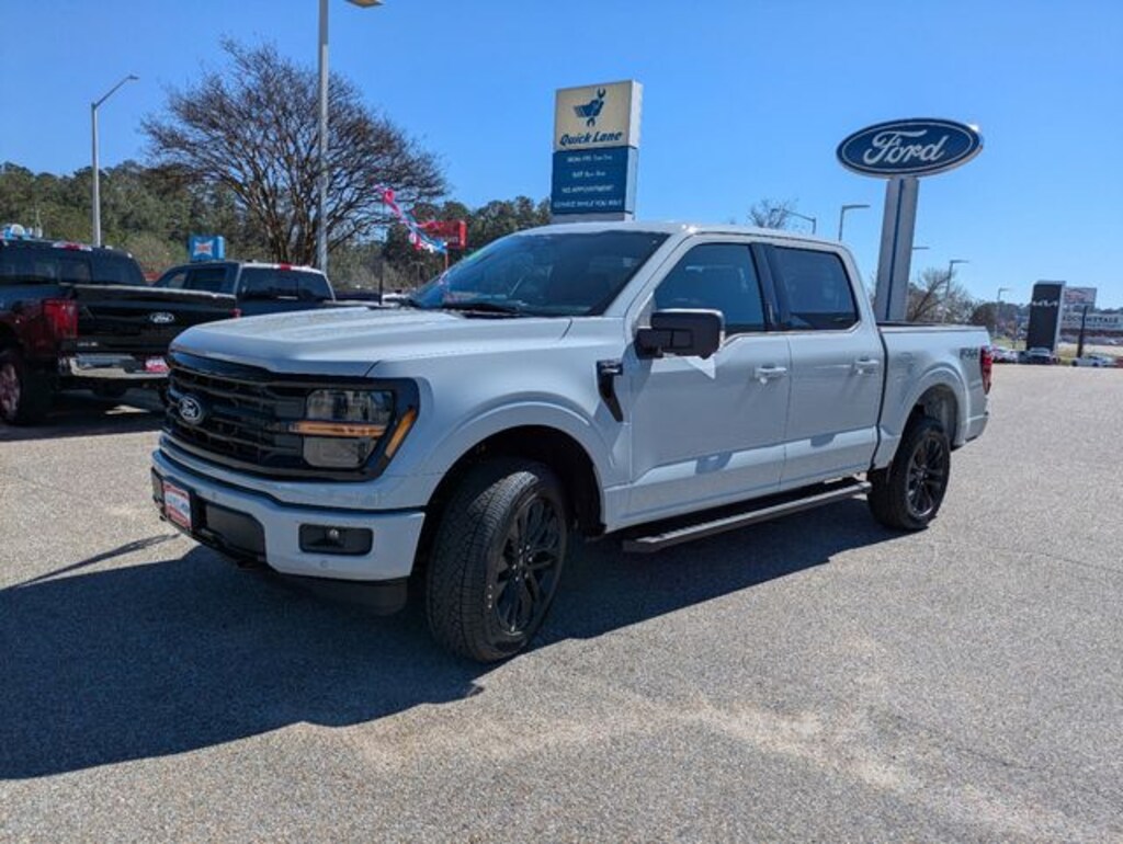 Bed Utility Package (4 Pickup Box Tie-Down Plates, Bed Storage Boxes, LED Box Lighting, and Tailgate Step with Work Surface), Equipment Group 302A Mid (18" Painted Aluminum Wheels, 360 Degree Camera, 400W Pro Power Onboard (cab & Bed), Adaptive Cruise Control with Stop and Go, Auto-Dimming Rear-View Mirror, Body-Color Door Handles, Chrome Front and Rear Bumpers, Cloth 40/20/40 Front Seat, Dual-Zone Electronic Automatic Temperature Control, Ford Co-Pilot360 Assist 2.0, Front Parking Sensors, Heated Front Seats, Intelligent Access with Push Button Start, Power Glass Heated Sideview Mirrors, Power-Sliding Rear Window, Radio: AM/FM Stereo with SiriusXM 360L, Remote Start System with Remote Tailgate Release, SYNC 4 with Enhanced Voice Recognition, Towing Technology, and Wrapped Steering Wheel), Ford Connectivity Package (1-Year Included), FX4 Off-Road Package, Internet access capable: 5G Modem - Ford Connectivity Package, Mobile Office Package (Console Worksurface and Partitioned Lockable Rear Storage), Tow/Haul Package, XLT Black Appearance Package Plus (6" Black Running Boards, Black Exterior Badging, Black Grille, Body-Color Front and Rear Bumpers, Dark Interior Appliques, Dual Exhaust with Black Tips, Gray Box Side Decal, and Wheels: 20" Gloss Black Painted Aluminum), 3.31 Axle Ratio, 4-Wheel Disc Brakes, 6 Speakers, ABS brakes, Air Conditioning, Alloy wheels, AM/FM radio: SiriusXM with 360L, Auto High-beam Headlights, BlueCruise (equipment + 1 Year + 90-Day Plan), Brake assist, Bumpers: body-color, Cloth 40/Console/40 Front Seats, Compass, Delay-off headlights, Driver door bin, Driver vanity mirror, Dual front impact airbags, Dual front side impact airbags, Electronic Stability Control, Emergency communication system: SYNC 4 911 Assist, Front anti-roll bar, Front Center Armrest, Front fog lights, Front reading lights, Front wheel independent suspension, Fully automatic headlights, Heated door mirrors, Illuminated entry, Low tire pressure warning, Occupant sensing airbag, Outside temperature display, Overhead airbag, Overhead console, Panic alarm, Passenger door bin, Passenger vanity mirror, Power door mirrors, Power steering, Power windows, Radio data system, Rear Parking Sensors, Rear reading lights, Rear step bumper, Rear window defroster, Remote keyless entry, Security system, SiriusXM with 360L (3-Year Plan), Speed control, Split folding rear seat, Steering wheel mounted audio controls, Tachometer, Telescoping steering wheel, Tilt steering wheel, Traction control, Trip computer, and Variably intermittent wipers.